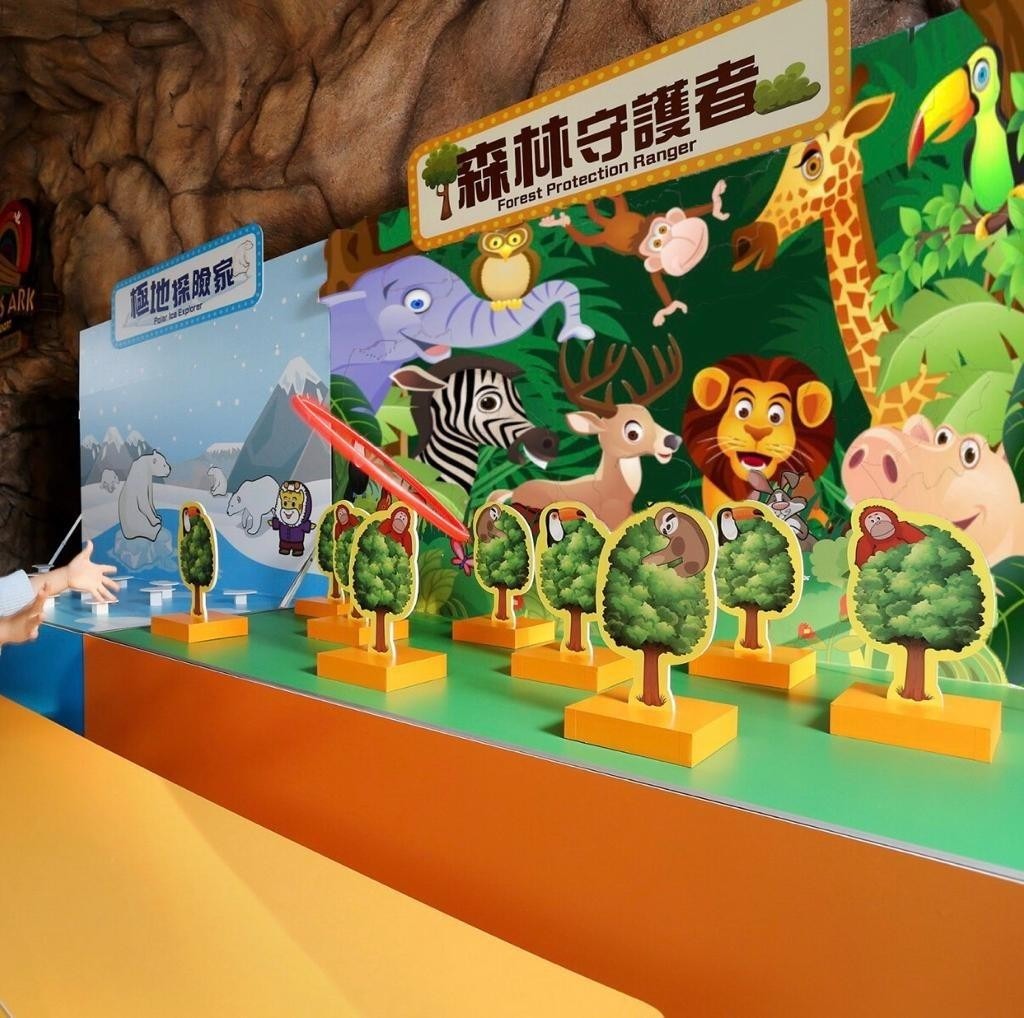 《森林守護者》將膠圈成功投擲進有雨林動物的樹上(受訪者提供)
