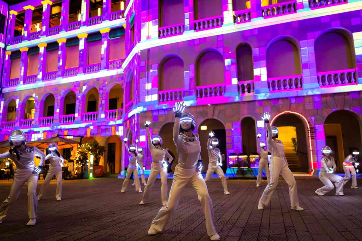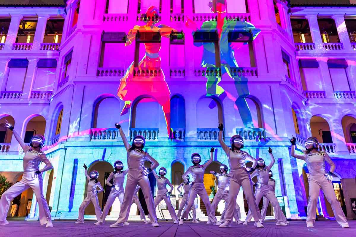 「綻放⼤館」採⽤全球領先的立體光雕投影技術,每年為前中區警署的古蹟建築外牆賦予不同⾯貌。 五周年作品《流光幻夢》將擴⼤製作規模,創作出⼀個揉合⾳樂、舞蹈及流⾏文化,尤如萬花筒般絢爛的霓虹的⼠⾼夢境。香港最具創意與想像⼒的跨媒介團體之⼀ The Collective 透過獨特視⾓,將香港熟悉的都市脈搏與 70 年代舞曲的迷⼈律動扣連起來,藉此喚起 20 世紀後半葉席捲亞洲的⼠⾼文化。作品更重新演繹同期的經典電影場⾯,從⼀代武打巨星的動作電影、家傳⼾曉的喜劇、荷⾥活歌舞片,以⾄劃時代的太空史詩式電影,為觀眾帶來跨文化的視覺衝擊。