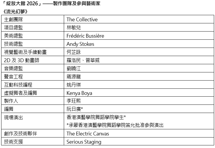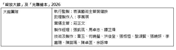 年度立體光雕投影匯演「綻放⼤館」於 2026 年 2 ⽉ 6 ⽇⾄ 22 ⽇期間矚⽬回歸,以光影藝術為古蹟建築注入創意活⼒,也標誌著此匯演第五年照亮⼤館。⼤館檢閱廣場及營房⼤樓外牆將於每晚 6 時 30分⾄ 9 時,以光雕投影匯演掀起連場的⼠⾼狂熱派對。此外,同期的師友計劃「光雕繪本」亦連續第三年舉辦,呈獻多位歷屆參與藝術家⽇臻成熟的全新創作。作為⼤館的藝術及歷史文物節⽬,是次匯演由香港賽⾺會慈善信託基⾦提供主要資助,並同時獲中電控股有限公司為「綻放⼤館 2026」⾸席贊助、東⽅匯理私⼈銀⾏為「光雕繪本 2026」卓越贊助。