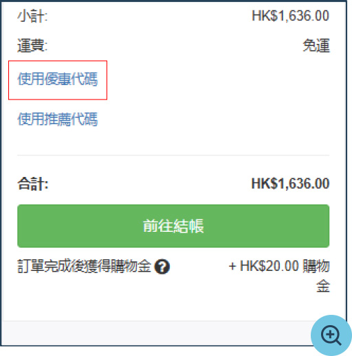 - 顧客必須於網上購物結帳時在「使用優惠代碼」一欄中輸入此優惠代碼方可兌現。