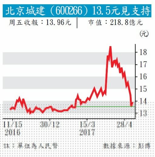 上月雄安新區規劃出台後,北京城建一度挾最重概念股之名炒上至近20元水平,然而北京突推出新一輪樓市調控措施,令該股打回原形,回補上升裂口。然而集團因有大量項目且分散多地,未來業務發展受有關調控阻礙的影響有限,可於近月支持13.5元水平吸納,博其反彈兩成至16元,止蝕價則定於12元。