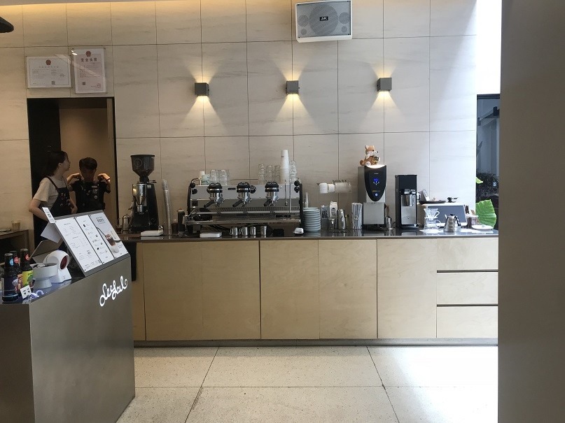 Seesaw咖啡店內採用開放式咖啡製作台的設計,讓客人對咖啡的製作過程一目了然(駐滬記者林雯婕攝)