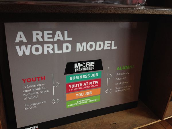 More Than Words的商業模式是雙軌制,用賺錢的書店和餐廳來支持非牟利培訓機構的開支,年青人受訓管理業務,每年可賺取五十萬美元的收入,而且只要有需要便可以繼續擴展。數字統計,以往囚禁一位犯事年青人的成本是七萬美元,但在More Than Words受訓只需二萬八千美元,現在透過訓練他們管理書店等業務,受訓的成本由業務賺回來,其中二萬二千美元便不需花費了。能創造這些奇妙的數字,就是有社會效益的商業可以做到的。